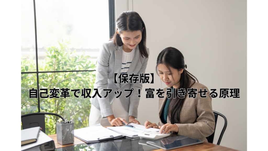 1. 自己変革とは何か?なぜ人生と収入が変わるのか 「このままでいいのかな…」と感じたことはありませんか?自己変革とは、ただ行動を変えることではなく、思考や価値観の“土台”を変えることです。考え方が変わると選択が変わり、結果として収入や働き方にも変化が生まれます。本記事では、自己変革の本質と、なぜそれが人生や収入アップにつながるのかをわかりやすく解説します。 1-1. 自己変革の本質は「考え方の変化」 自己変革の本質は、行動ではなく「考え方」を変えることにあります。なぜなら、日々の選択...【保存版】仕事ができる人の共通点は自己啓発の設計力